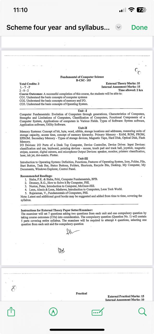 Syllabus of Fundamental of Computer Science B-CSE-103 (MDC).